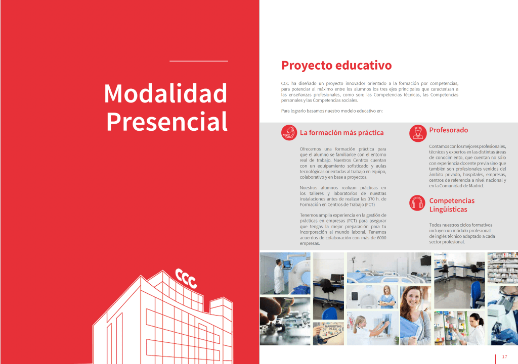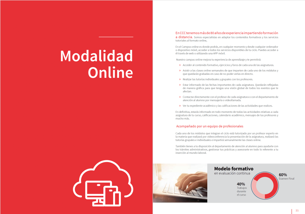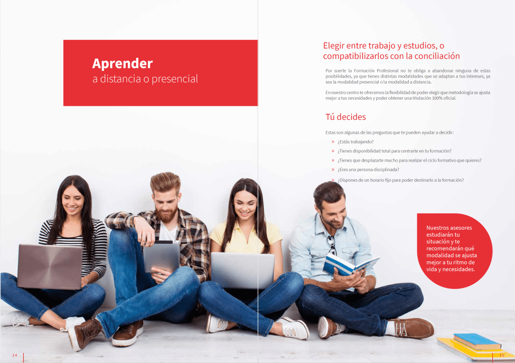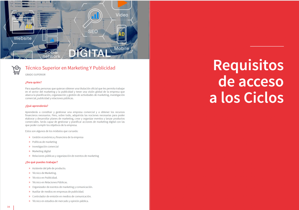 El objetivo de esta guía para los estudiantes de Formación Profesional de CCC fue crear un diseño claro, visual y atractivo. Quería que fuera fácil de entender y que explicara de forma sencilla todos los detalles importantes de la formación, facilitando el aprendizaje de los estudiantes.