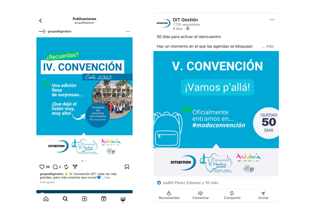 Apoyo en la gestión del proyecto de comunicación de la V. Convención DIT, colaborando en redes sociales (Instagram, Facebook, LinkedIn) y en el envío de emails con Mailrelay.